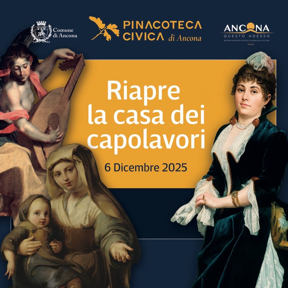 Dopo due anni di chiusura, sabato 6 dicembre 2025 la Pinacoteca Civica “Francesco Podesti” di Ancona riapre al pubblico con un nuovo allestimento delle sale espositive permanenti. La riapertura segna il completamento di un ampio progetto di riqualificazione, con lavori di adeguamento impiantistico, meccanico, elettrico e di climatizzazione, garantendo al museo standard di conservazione e fruizione adeguati al suo ruolo. Contestualmente è stato predisposto un progetto scientifico delle collezioni, pensato per garantire al pubblico una fruizione più completa, coinvolgendo il Museo Tattile Statale Omero per la condivisione degli aspetti museografici legati all’accessibilità e all’inclusione. Marche Teatro inoltre supporterà la Pinacoteca nell’attività di promozione.